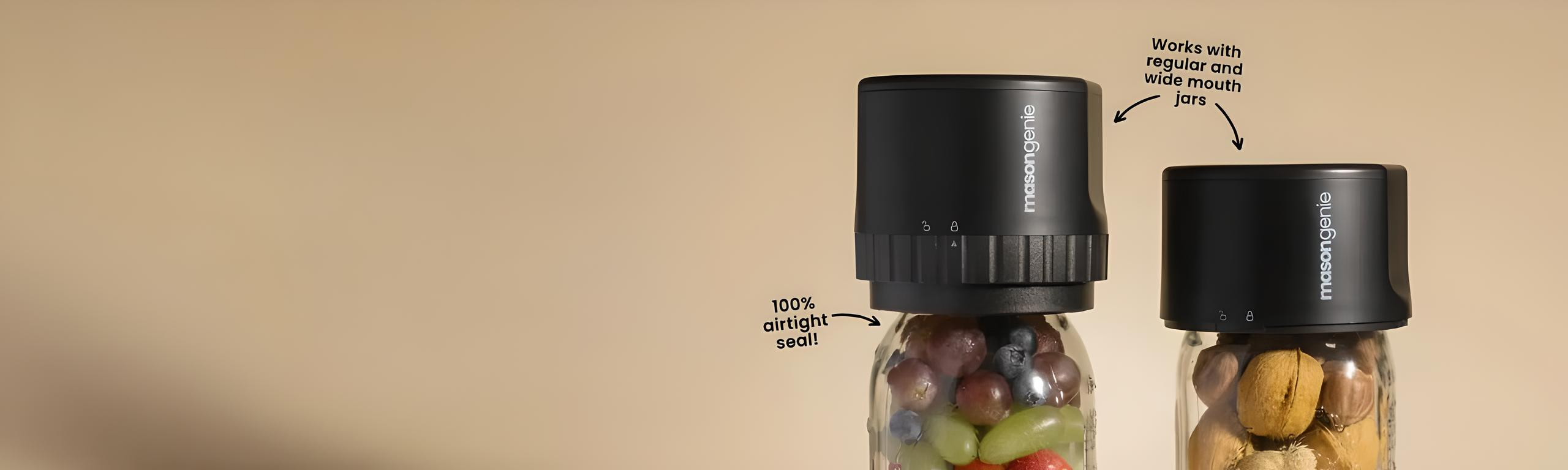 Instantly make your food last 3-5x longer with the Mason Genie's powerful vacuum seal.
