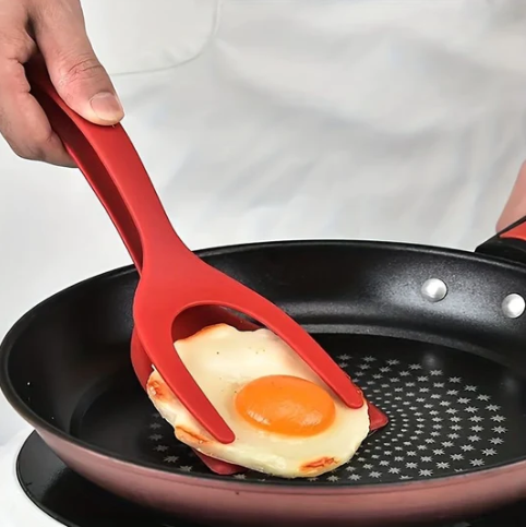 Grip&Flip is a kitchen essential, made with soft, heat-resistant, food-grade Nylon, it's safe to use and won't scratch your tools. The thin, flexible head with an angled edge makes flipping and gripping foods a breeze. Plus, it doubles as tongs for even more convenience. Get ready to flip, turn, fry, and clip with ease.