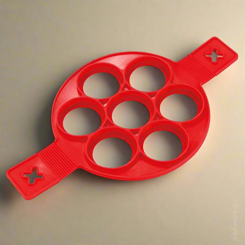 Fast, easy, and fun way to make perfect pancakes every time! The Pancake Pal flips multiple pancakes at the same time and without the mess. Just place in preheated pan, add batter, and let them brown, then simply lift and flip. The secret is the non-stick, silicone ring. The side holds batter to the perfect shape for even cooking, while the flat bottom ring supports everything. Stovetop safe silicone while the easy flip grips keep hand away from the heat. Dishwasher safe. Also great for eggs, omelets, hash browns, and so much more.