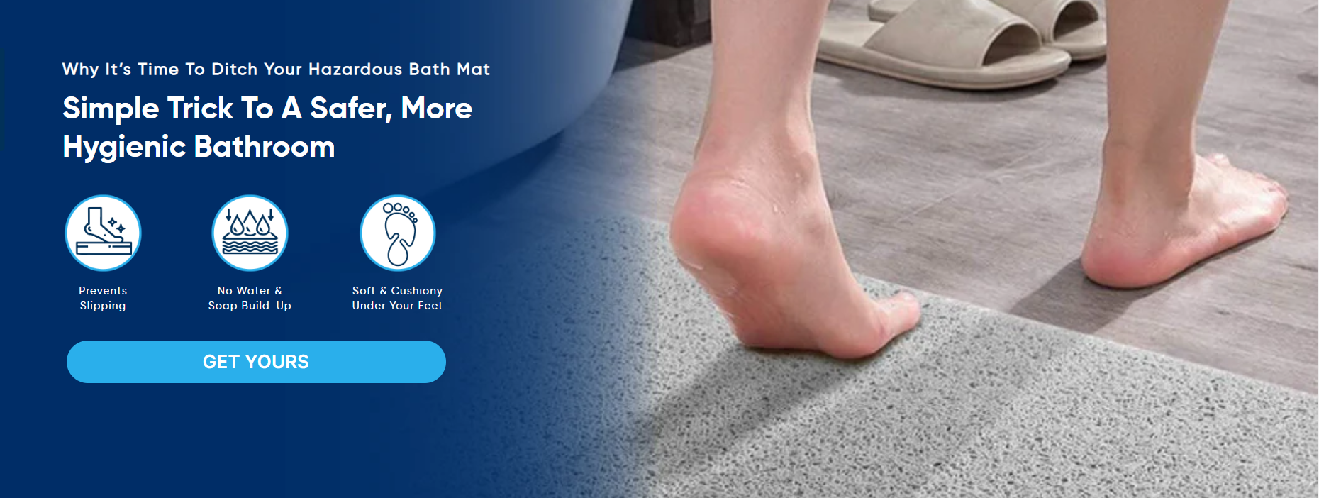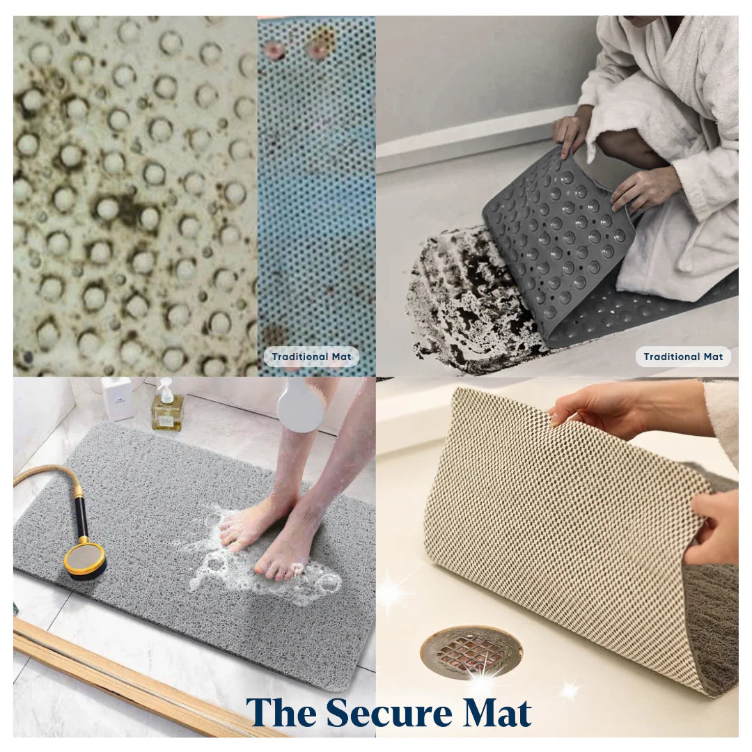 Upgrade to a safer, more hygienic bathroom with the SecureStep. Traditional bath mats can harbor mold, mildew, and bacteria, posing serious risks. Made from top-grade Microban and Loofah fabrics, the SecureStep drains water instantly, preventing slips and keeping your bathroom dry and clean. Enjoy soft, cushiony comfort underfoot with unbeatable safety and hygiene.